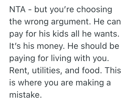 She doesn’t think it’s fair for them to subsidize his daughter’s cost of living.