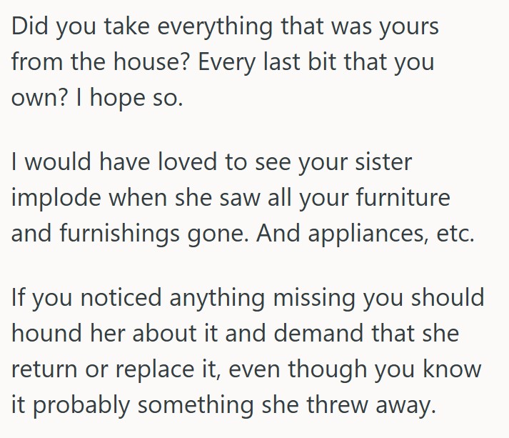 That is what happened to the woman in this story, but it got even worse when her sister told her to come get all of her stuff.