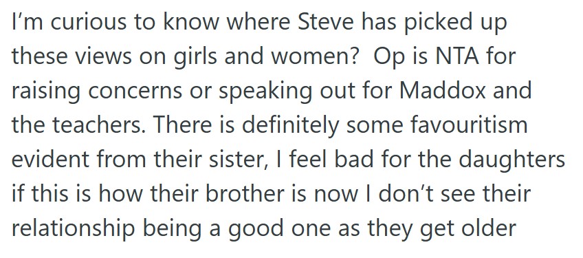 I pointed out that Steve has said bad things about women right in front of me, including about his own sisters, who are only 6 and 3.