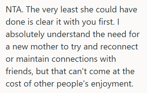 Everything was going fine until my friend, Sarah (28F), showed up with her 7-month-old baby.