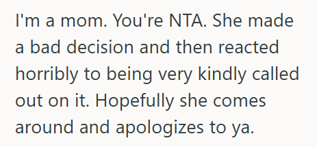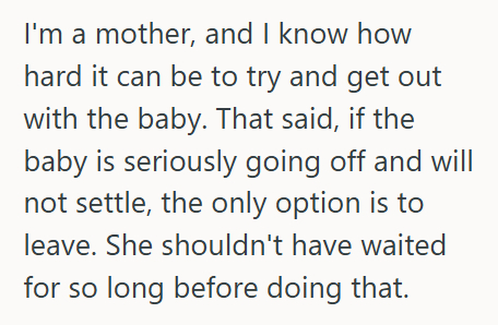 She was clearly upset and told me that I “should be more understanding” since she can’t just leave the baby at home, and she was doing her best to keep her calm.