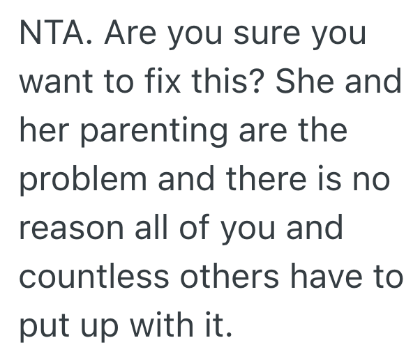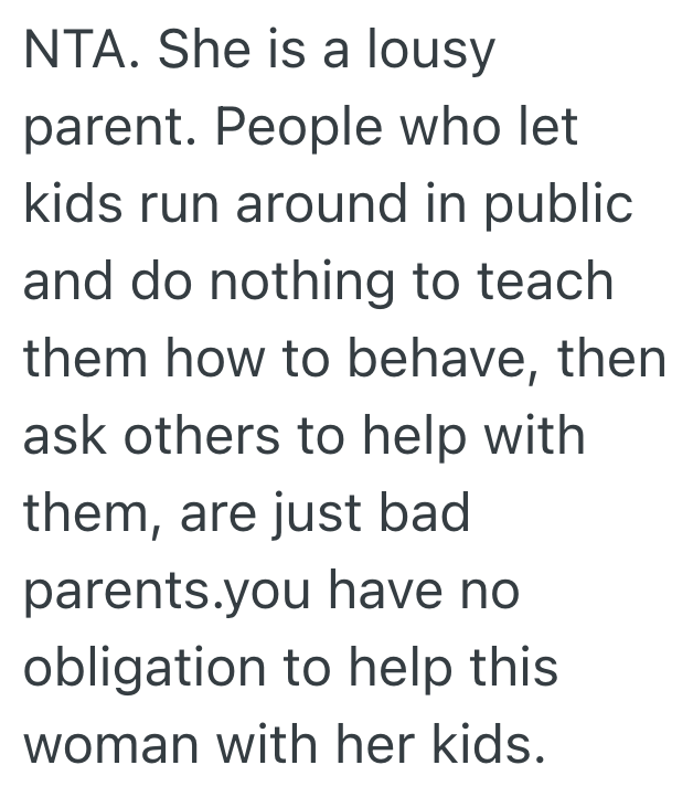 The problem is, her kids are unruly and terrible.
