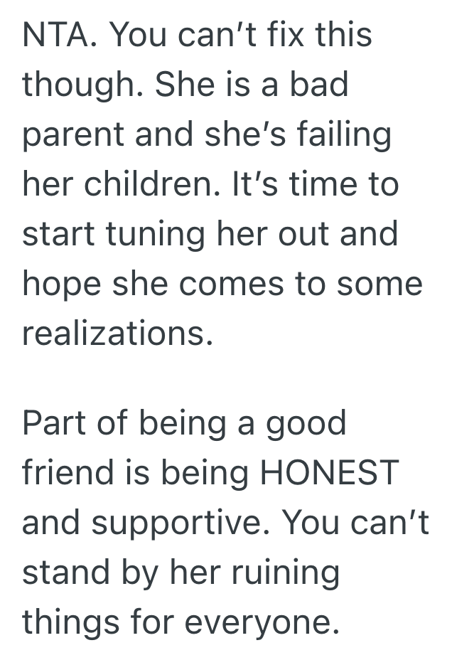 Her friend isn’t a very good parent.