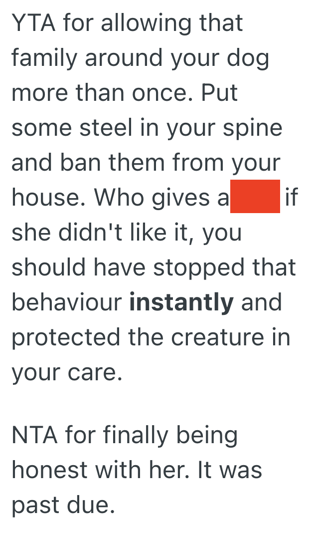 I started inviting her less to my place whenever I host because her middle child loves to bite and pull my dog’s tail.