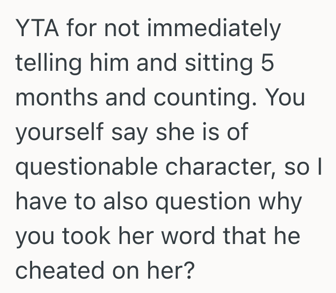 I waited until my annoyance over the falling out had subsided before considering telling her BF as I feel like if I tell him it should purely be because it’s the right thing to do.