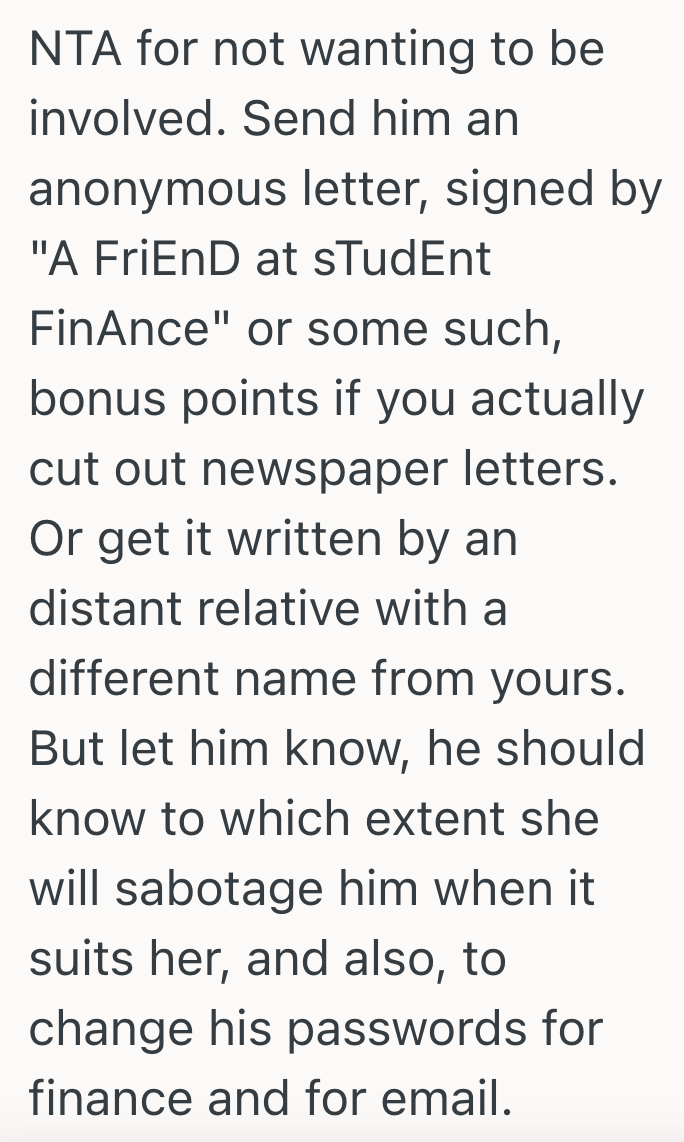 WIBTA if I told my housemate his girlfriend cancelled his student finance application