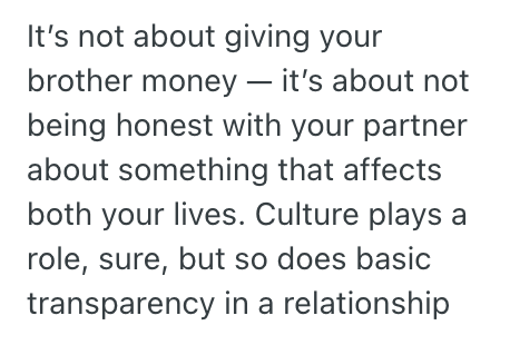 I told him that he wouldn’t understand why I give my brother money because of this.