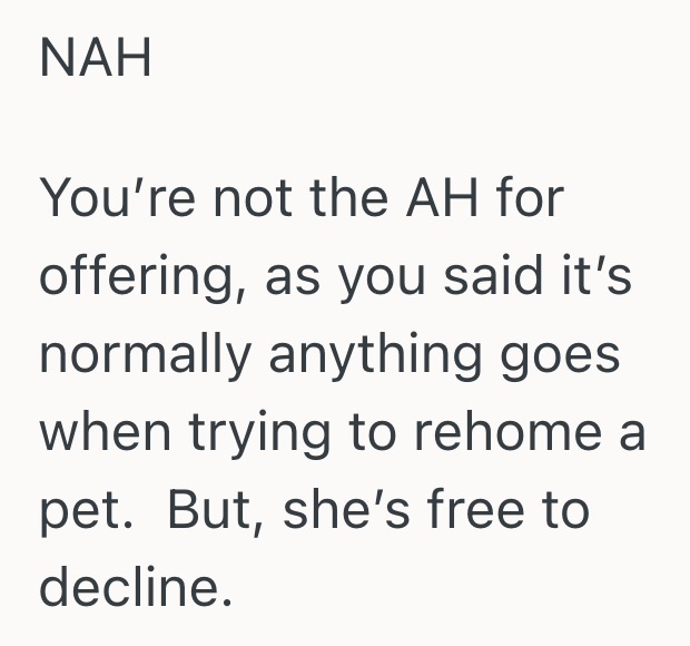 How would you feel if a coworker mentioned wanting to rehome their pet, but when you offered to take the pet, the coworker told you that they didn’t want you to have it?