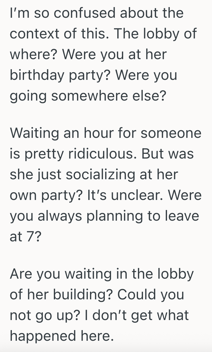 AITA for leaving after my friend invited me to her birthday but then made me wait for more than an hour in the lobby because she was busy with other people