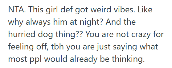 I told him I wasn’t comfortable with one-on-one contact, especially at night, but he agreed the next day to be there as she buried her dog.
