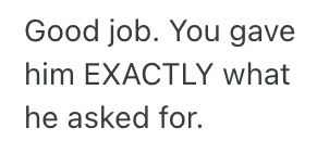 He won’t fire me or write me up because this is technically what he wanted.