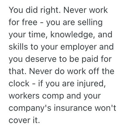 He thought that I would just clock out and stay, off the clock, but why would I do that?