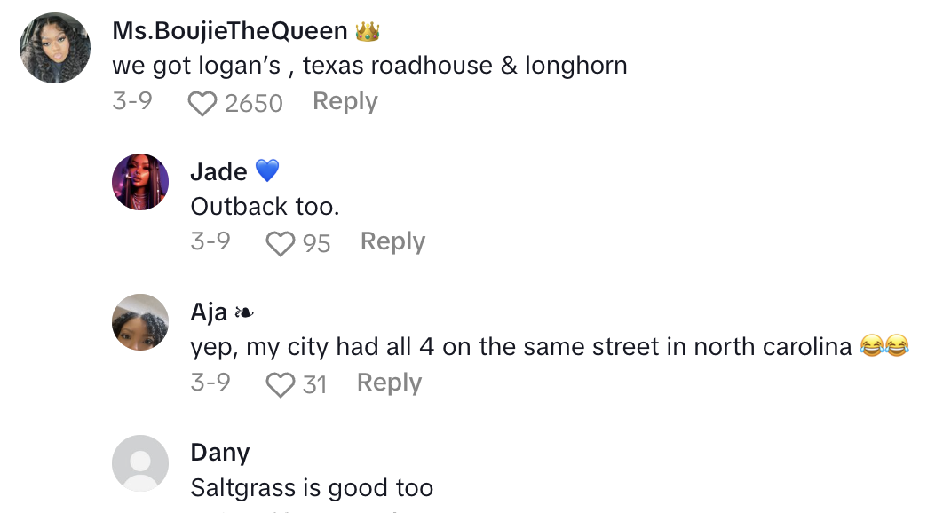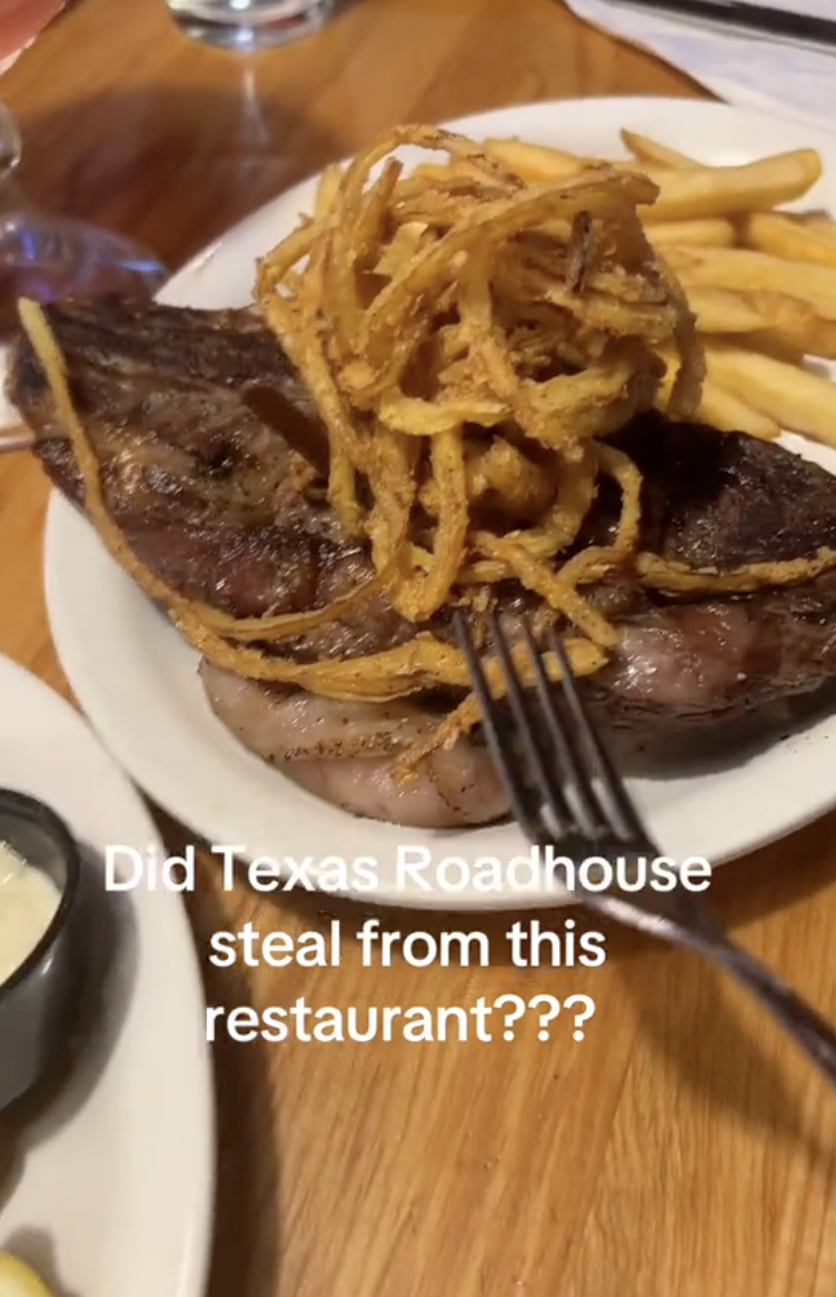 The woman told viewers, “I feel like Texas Roadhouse stole their style and just had more money so they went bigger.”
