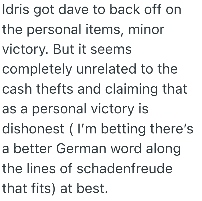 Idris, now sharper, had recorded the whole “no personal items” freakout on his phone (legal where we’re at) and sent it to HR with a rundown of Dave’s hypocrisy.