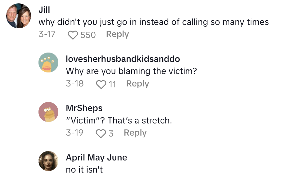 Tammy was waiting for 44 minutes at this point and she said, “I’m steaming upset.”