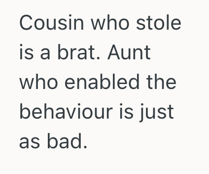 One of my cousins said I was making a big deal out of nothing and that cousin’s mom was giving me dirty looks.