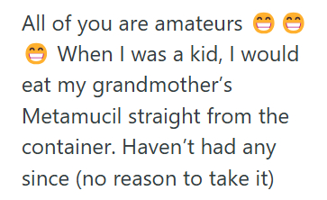This person stocked up on fiber as a kid and hasn’t needed it since.