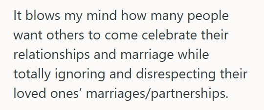 She expects them to come celebrate her relationship, but they can’t even bring the ones they love – it’s not fair.
