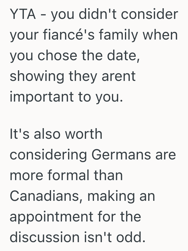 They probably should’ve run July 2026 by the in-laws before setting that date especially since they all live in Germany right now and will all have to travel to Canada for the wedding.