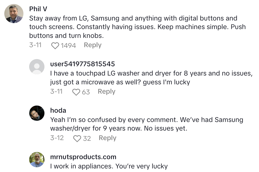 The TikTokker continued, “We switched it over to Speed Queen and they are everything we hoped for and more. Don’t waste time or money with Samsung or some other brands. Buy American!”