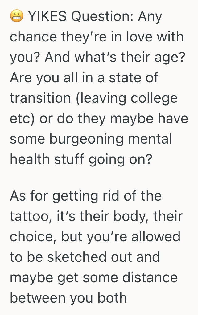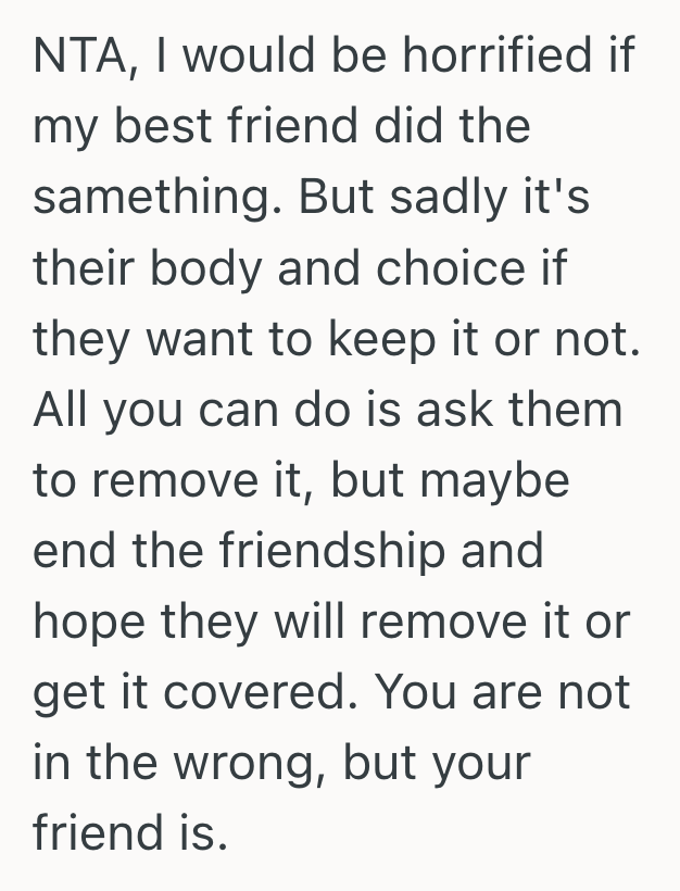 One person finds themselves shocked when their friend reveals an outlandish tattoo that leaves them looking for the closest exit out of the friendship.