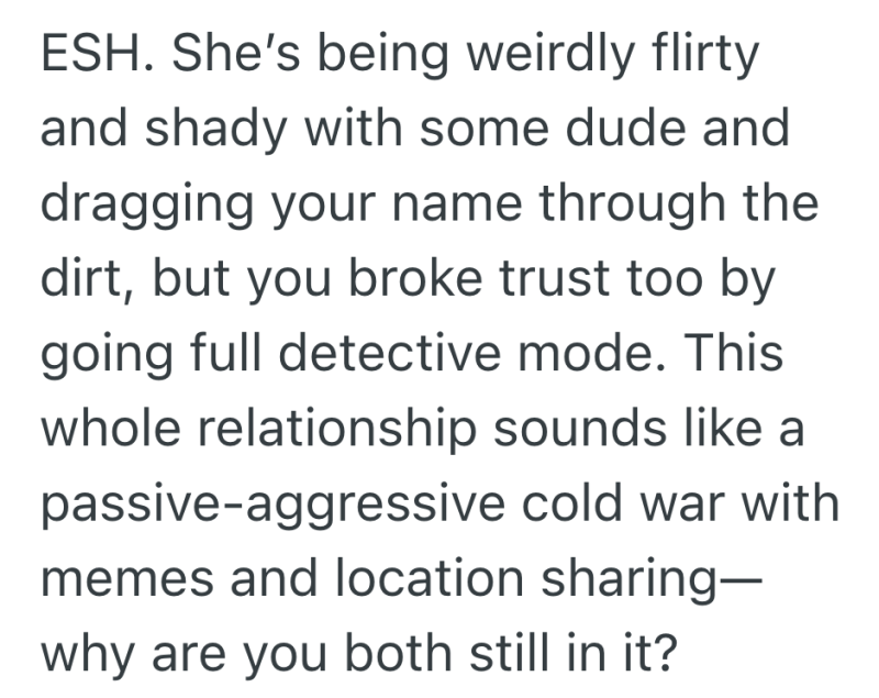 So seeing her vent to this guy about both of us stung. And then he sent her a meme that was pretty inappropriate.