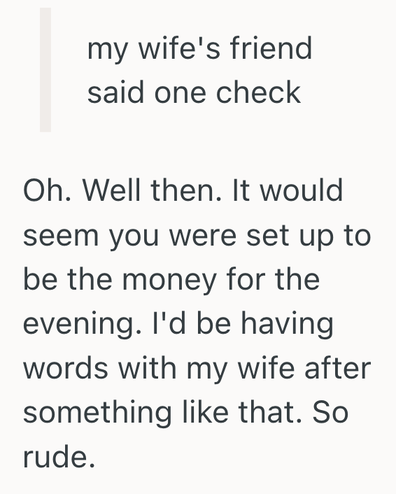 My wife is now upset with me also and said I should’ve just covered her friend’s meal too, and instead I made it a big deal.
