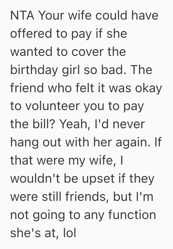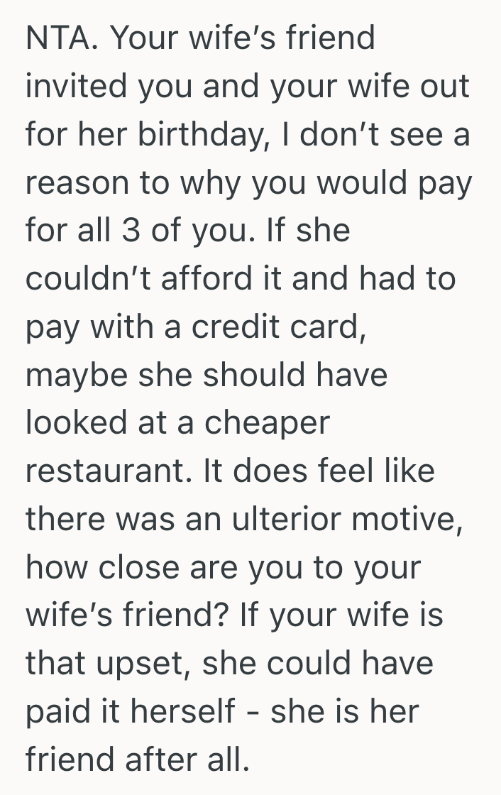 AITAH for not paying for my wife’s friend’s bday dinner ?