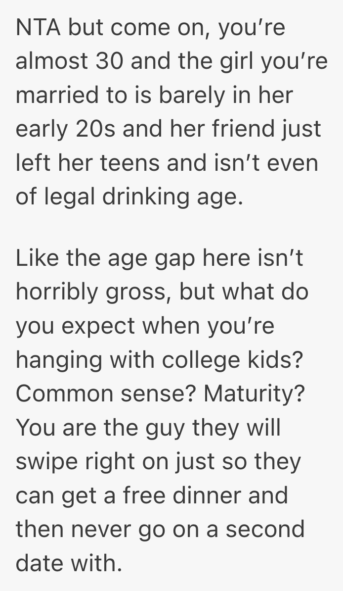 I (M27) went with my wife (F22) to her friend’s birthday dinner (F20).