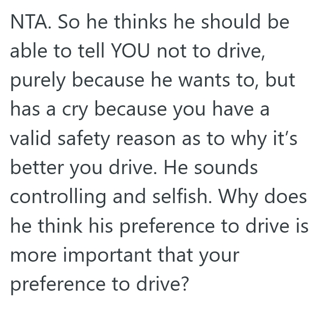 He usually always wants to drive and I’m rarely the one driving both of us.