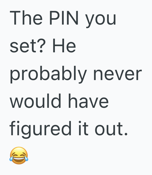 He was unable to hear anything and had no idea which code I set, so he had to reset the whole iPod to factory settings and put all the music back on, which took around 5–6 hours back then.