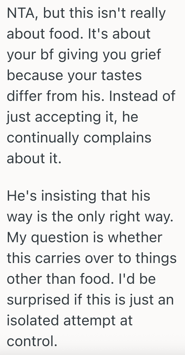 Her Boyfriend Thinks She’s A Picky Eater Because She Doesn’t Like Fish, But She Thinks He’s Actually A Much Pickier Eater Than She Is