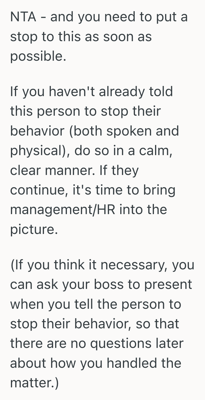 Her Coworker Crossed Her Personal Boundaries By Assuming She Was Pregnant And Touching Her Belly, So She Lost Her Cool In Front Of Her Boss