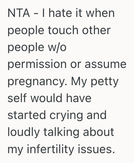AITA for snapping when someone rubbed my belly and implied I might be pregnant?