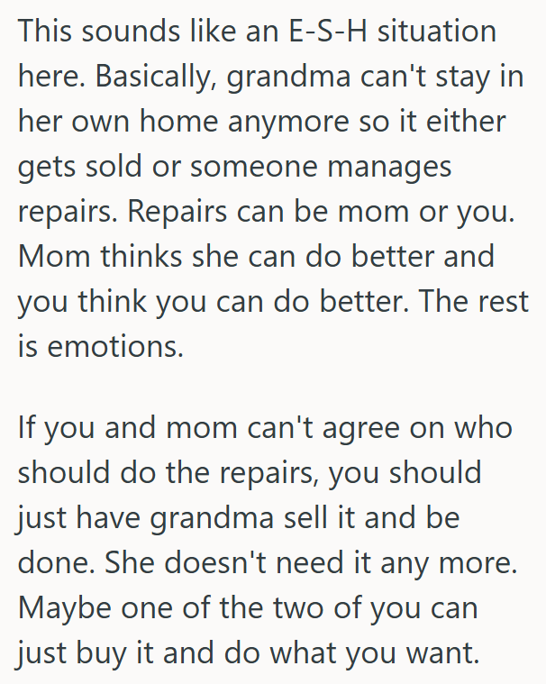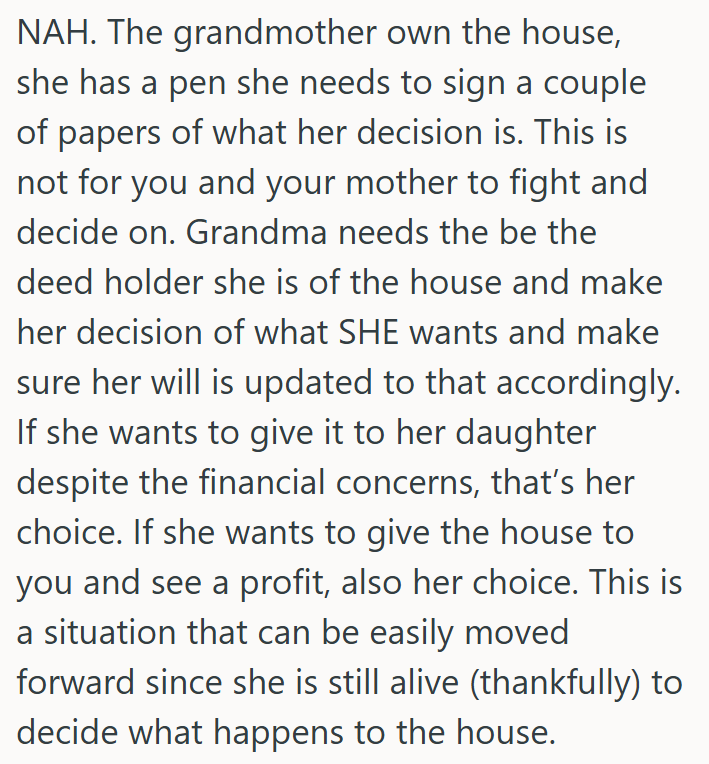 Her Grandma Asked Her To Move Into Her Former Home To Fix It Up, But Her Mom Is Mad That She Got Passed Over