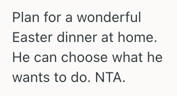 AITA for wanting my husband to choose our kids over his mom for Easter