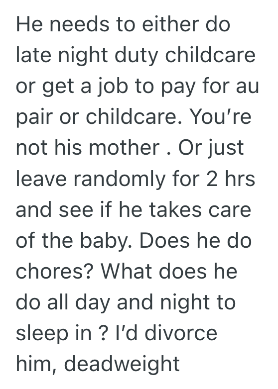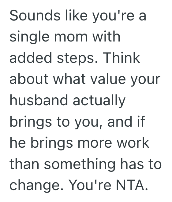 This commenter wonders if her husband is even bringing anything to the table at all.