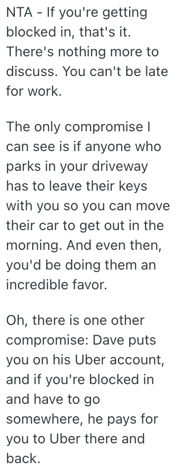 However, it began happening more frequently, and on a few occasions I’d be unable to move my own car when I had to go to work or leave for my own business forcing me to go to Dave’s house and play a guessing game for someone to move their car.