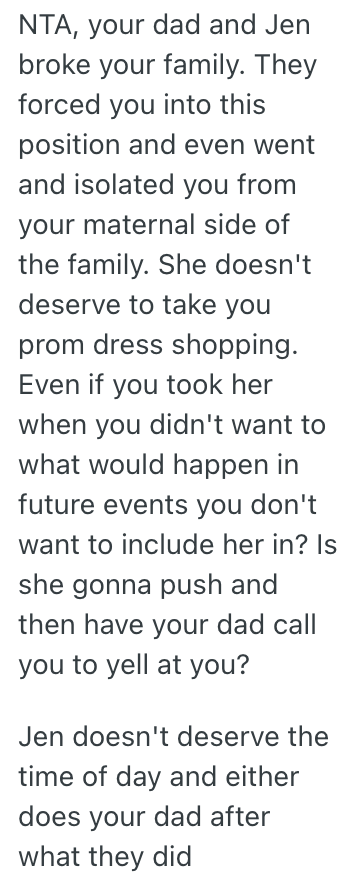 AITA for not agreeing to go prom dress shopping with my dad’s wife aka stepmother aka the affair partner?