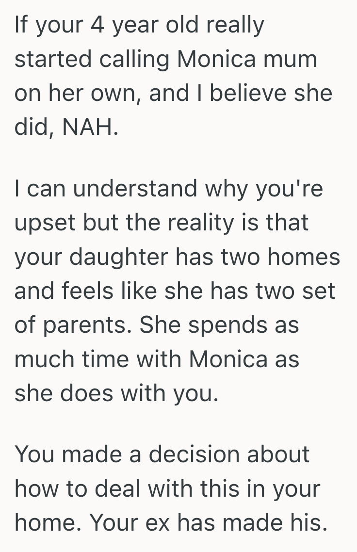 AITA for being mad that my 4 y old daughter calls her stepmom “mom” instead of her name