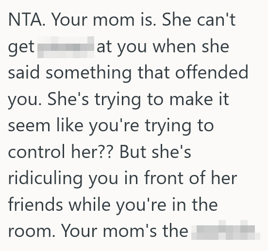 Son Is Tired Of His Mom Criticizing His Weight In Front Of Her Friends, But She Says He Has No Business Telling Her What She Can Say