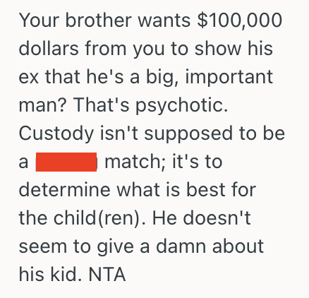 His Brother Wants Him To Give Him $100,000 To Fight For His Child’s Custody, But Even The Lawyers Don’t Think He’d Win
