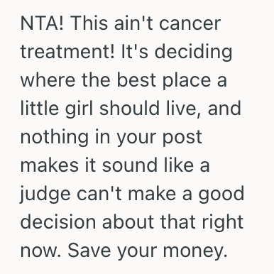 What would you do if a family member asked you to pay their legal fees so they could fight for child custody? Would you do it even though you would’t get the money back, or would you refuse since that’s a lot of money and your family member may not even win?