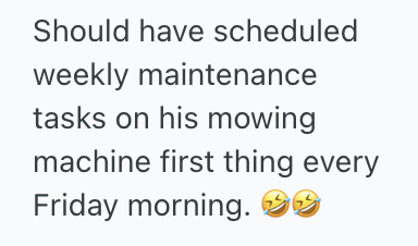 So, if he wrecked his mower midweek (often), he was always trying to get us to drop everything so we can repair his.