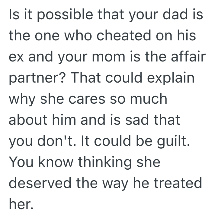 I think his mom cheated but I don’t know for sure.