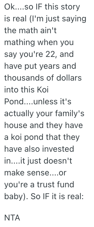 AITA for suing my neighbor after her kid trespassed and destroyed my koi pond?”