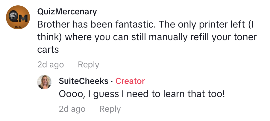 @ibc.suitecheeks This is how to clear the “Replace Toner” message on a brother printer to get more pages printed. DONT replace the cartridge until you try this trick to override the message. I was able to get over 3000 additional pages printed! My printer model is HL-L6200DW @error648394 @ilovebeets #scam