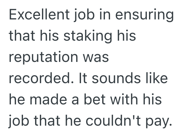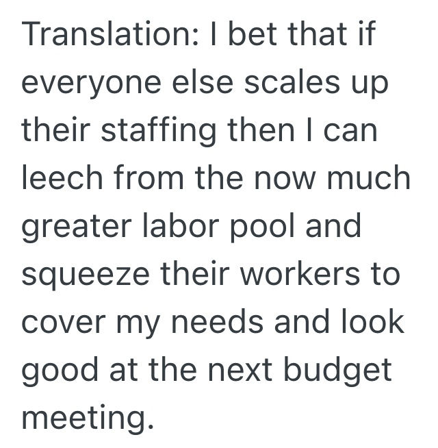 I then read out the last minutes with him stating they didn’t need any extra staffing and that the department head had staked his reputation on it.