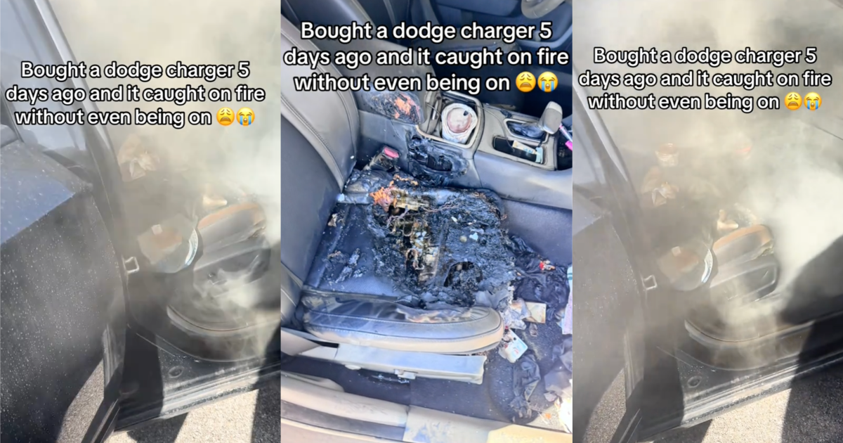 It reads, “Bought a Dodge Charger 5 days ago and it caught on fire without even being on.”