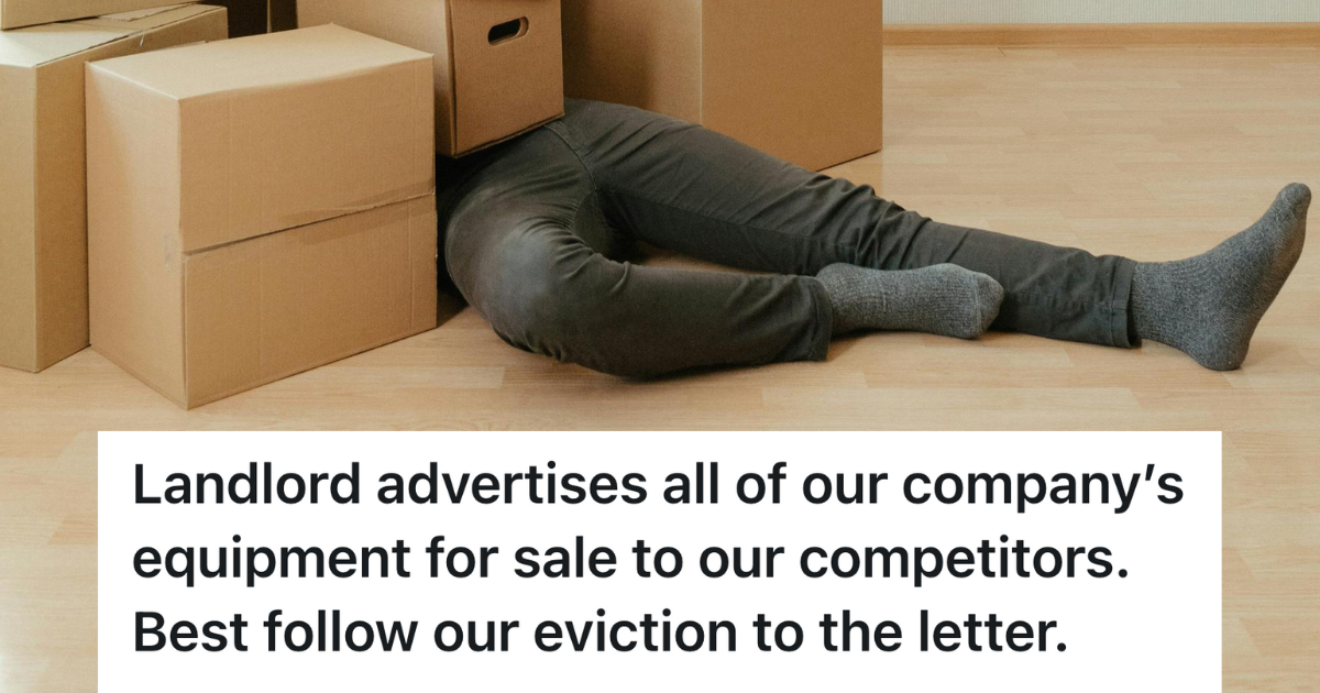 Landlord advertises all of our company’s equipment for sale to our competitors. Best follow our eviction to the letter.